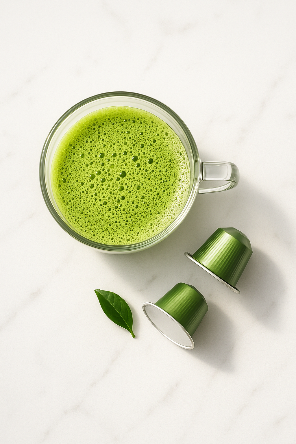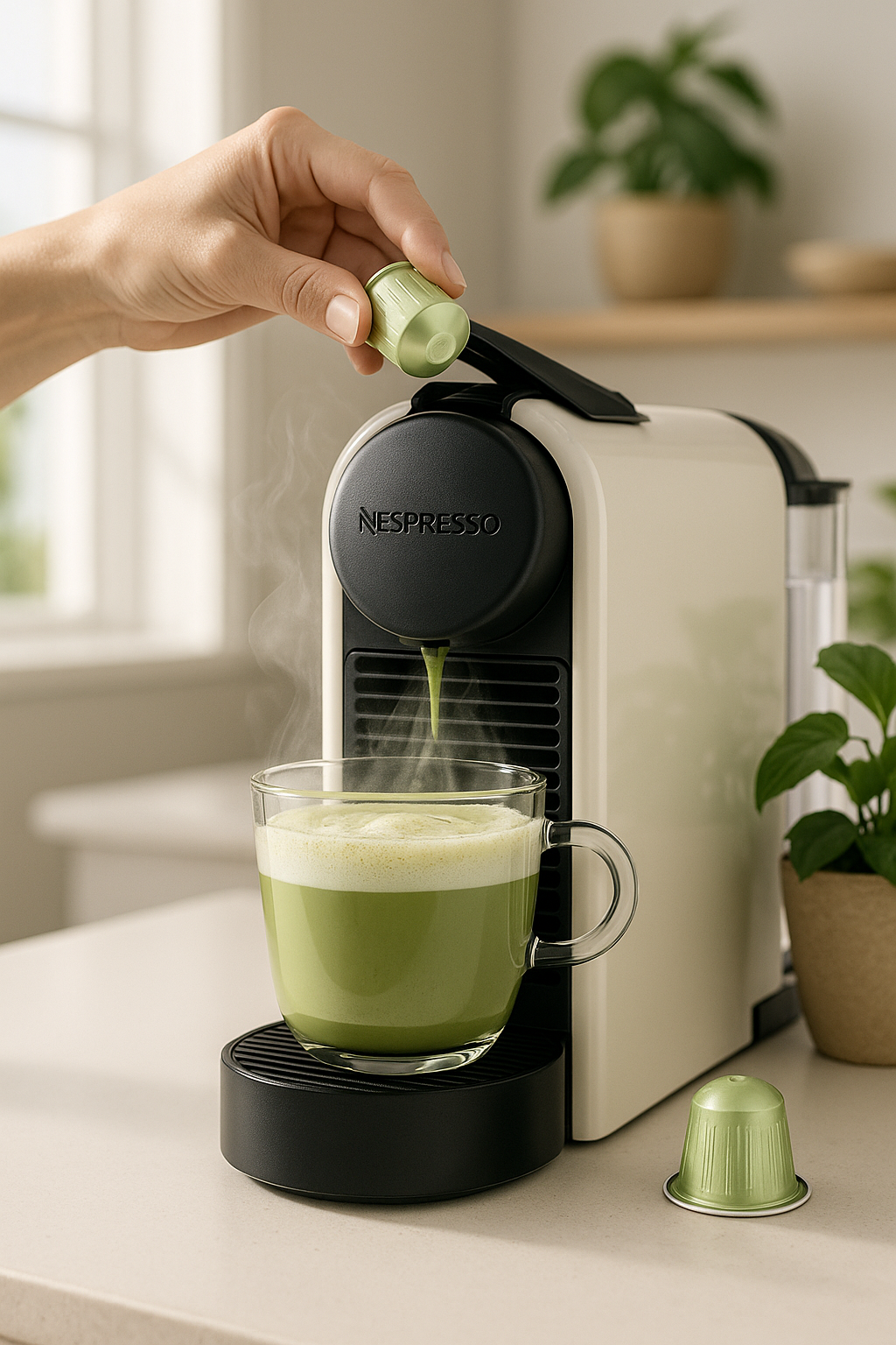 Insérez la capsule dans votre machine Nespresso® Original, choisissez espresso (40 ml) ou lungo (110 ml). En 30 secondes, votre matcha est prêt.